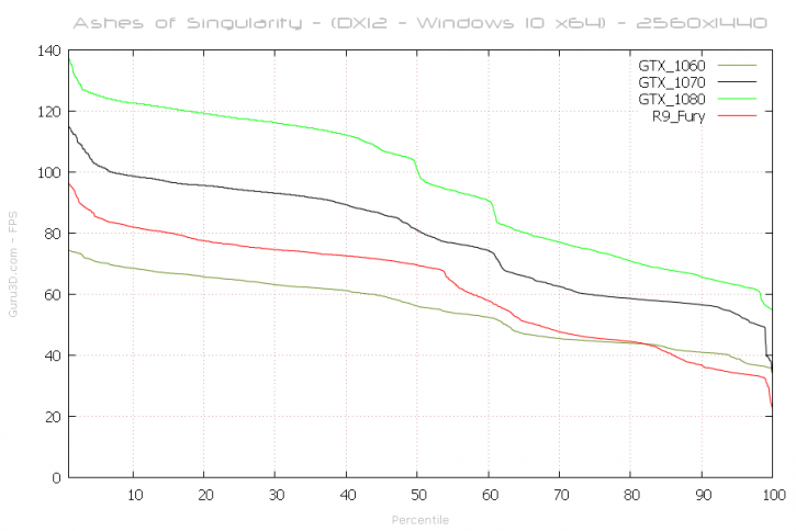 Si esto pueden parecer cábalas, echemos un vistazo al gráfico anterior que comparaba la Founders Edition con la G1 de Gigabyte, donde guru3d.com muestra una diferencia máxima de 8fps entre ambas, siendo el primero un modelo con menor frecuencia que el Winforce analizado; por lo que no es descabellado estimar esos 5 FPS de diferencia entre una GTX 1060 a 2000 MHz y una a 2150MHz.