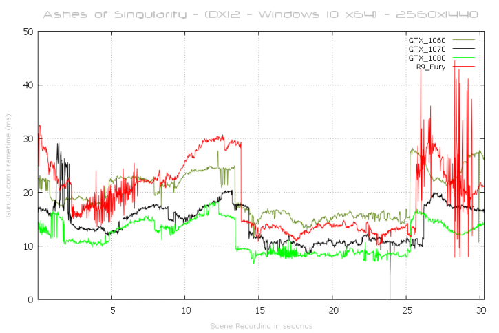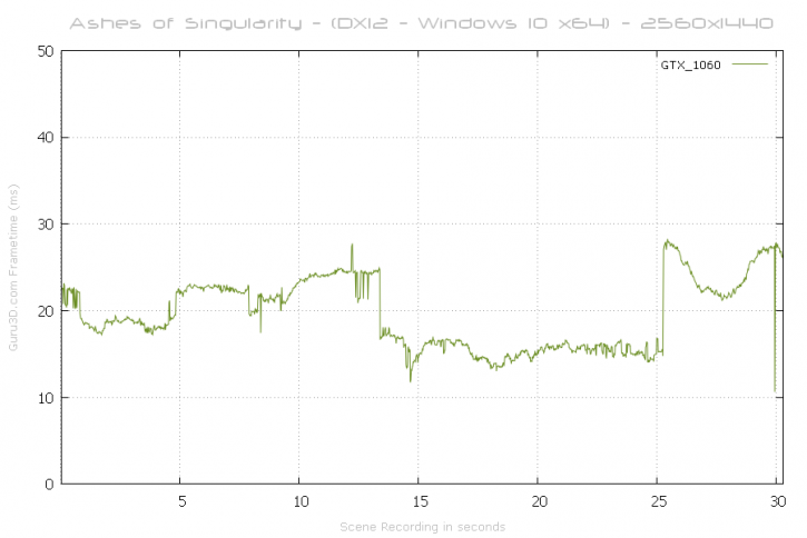Igualmente buena es la latencia que maneja en todo momento la gráfica, sin superar picos de 40 o 50 ms y donde los picos más elevados corresponden cambios de escena de algunos test, inherentes al juego. Por lo tanto, la fluidez de la gráfica a la hora de renderizar es sobresaliente y no dará lugar al temido micro-Stuttering, sobre todo a la hora de jugar “First Person Shooters”.