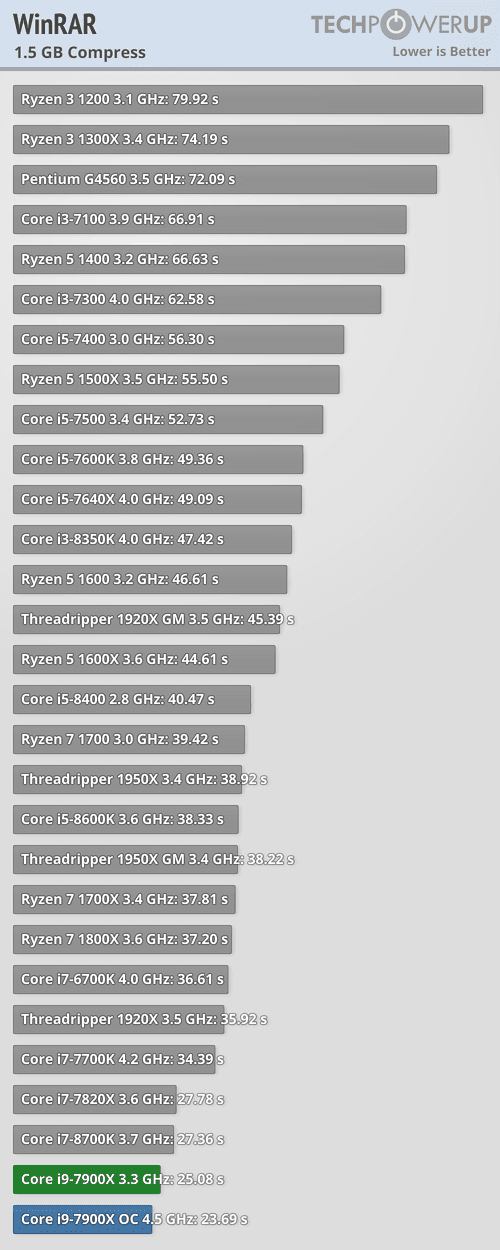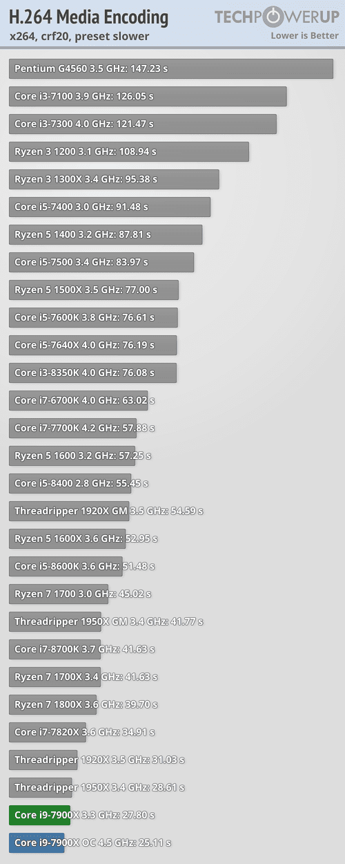 A continuación observamos en una serie de comparativas de rendimiento extraídas de Techpowerup, el comportamiento del procesador ante diversas tareas. La conclusión extraible es que aunque ofrece un buen rendimiento en videojuegos, existen opciones más asequibles para tales tareas, y que se desenvuelven bastante mejor. Sin embargo, en funciones de codificación, compresión, procesamiento gráfico y renderización, nos encontramos con una bestia.