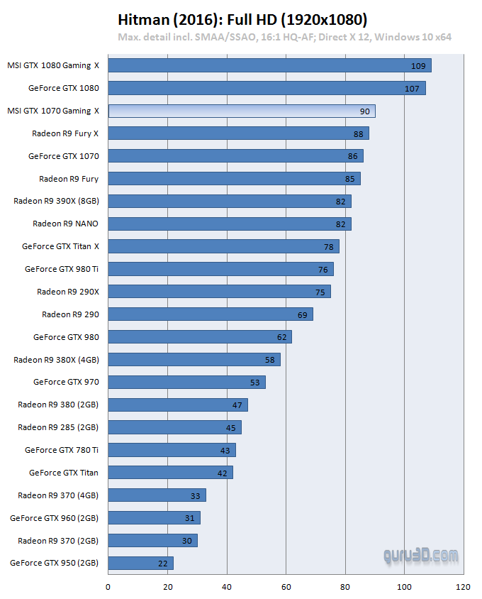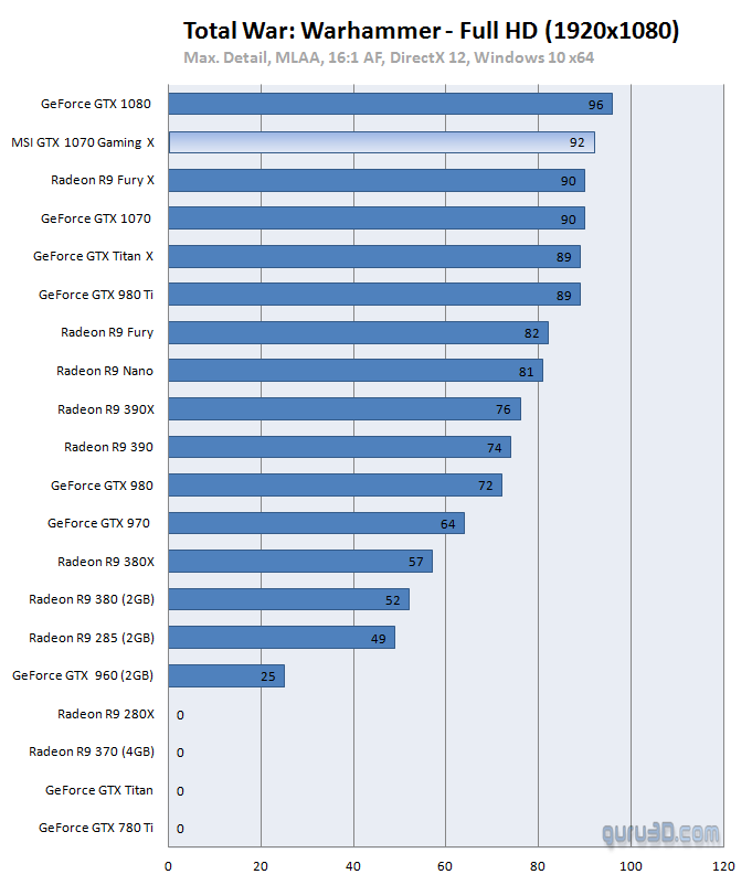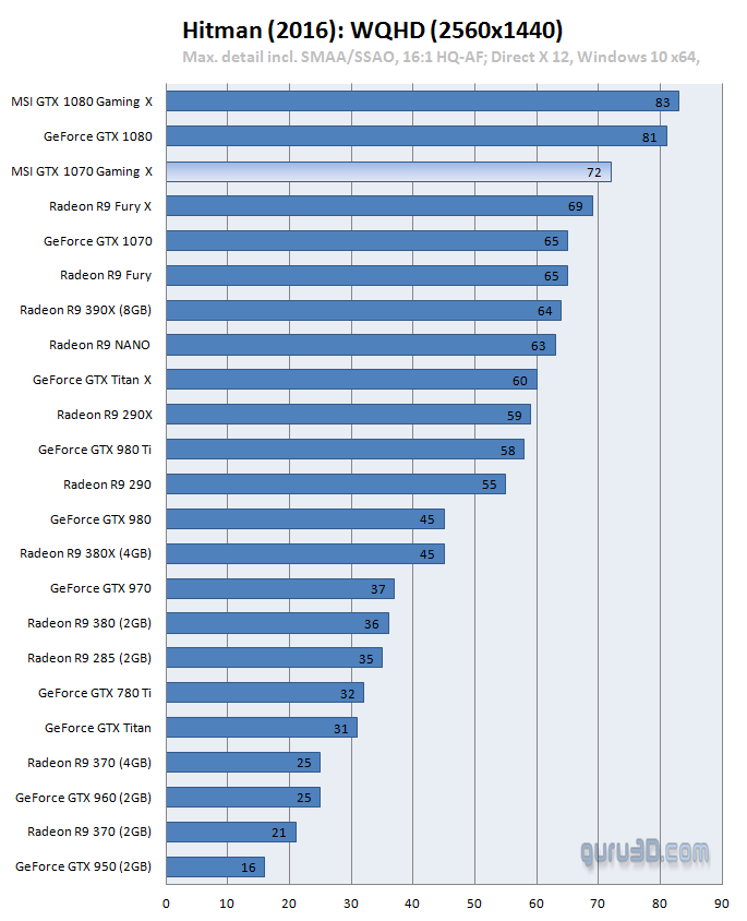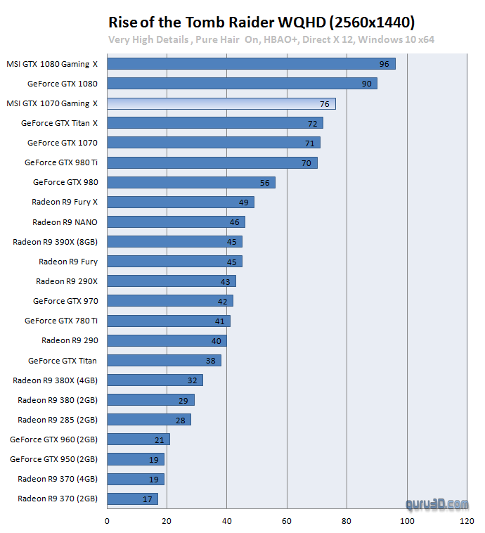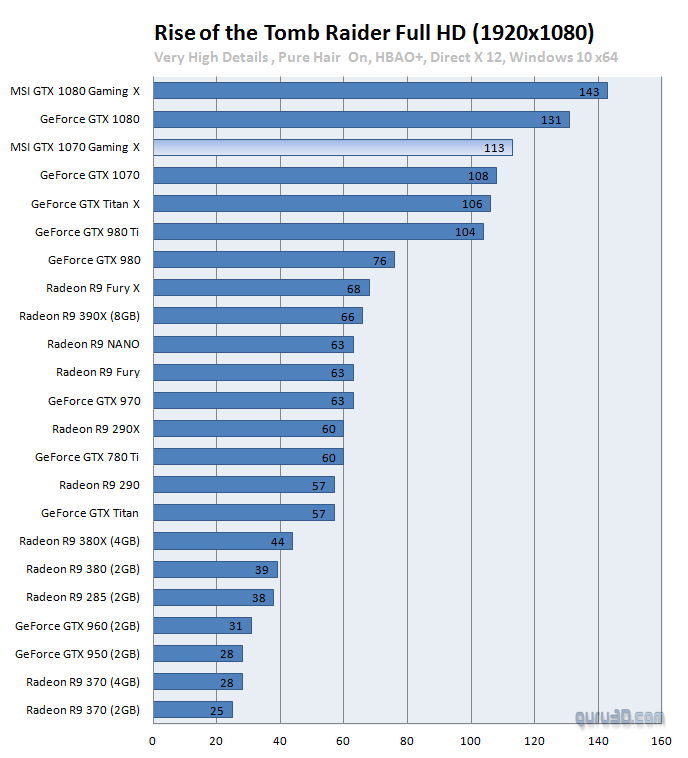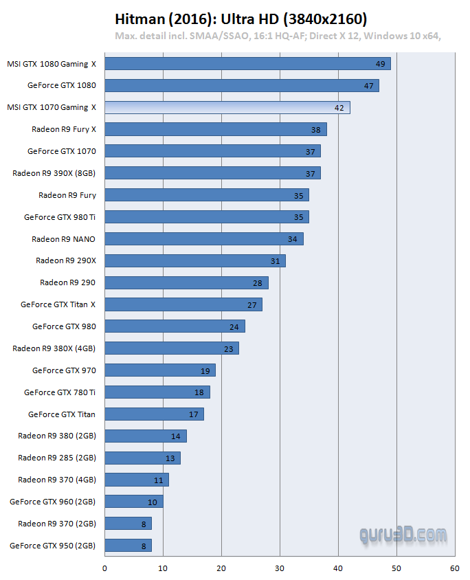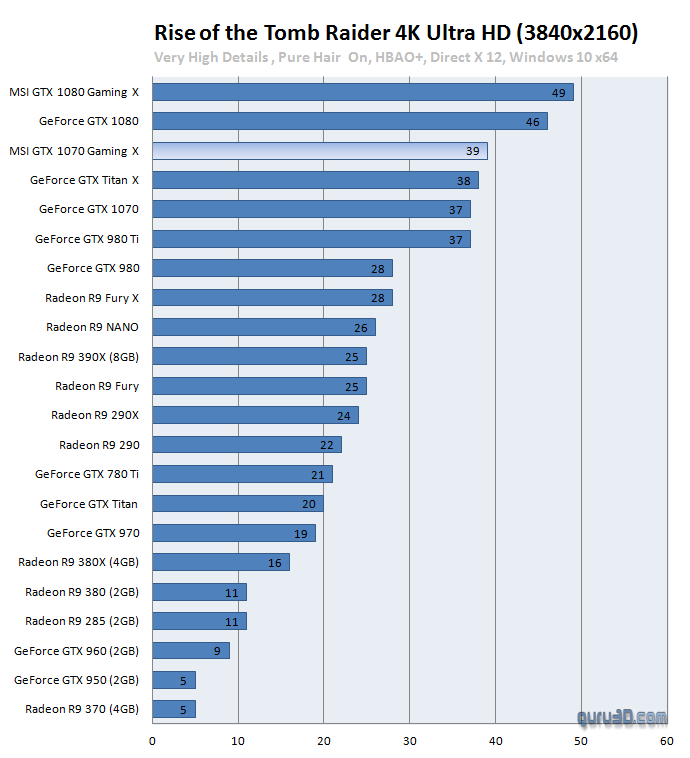Aunque el modelo del que hablamos ya llega con overclock de casa, hemos podido comprobar como la mayoría de usuarios consigue un OC estable por encima de los 2000 MHz, lo que supone un extra de más de 200 MHz sobre el modo OC de la tarjeta, y que pone de manifiesto el buen hacer de Nvidia con Pascal y MSI con el diseño de esta tarjeta. Es aquí cuando os dejamos con una galería de capturas cortesía de guru3d.com, donde se puede apreciar su buen rendimiento tanto en Test sintéticos (DX 11 y DX12) como en juegos DX11 y DX12.