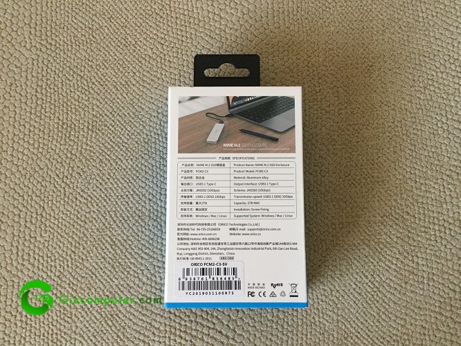 Empaquetado de la carcasa ORICO M.2 NVMe SSD